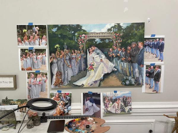 Wedding planning and decision-making can be overwhelming, so I've streamlined my booking process to help you develop or clarify your vision for your painting, select the perfect canvas size for your space, and book your date quickly and without hassle. Don't worry, I'll guide you through this no-stress process.